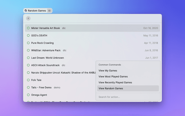 Search and view information about any game on steam, as well as games you own.