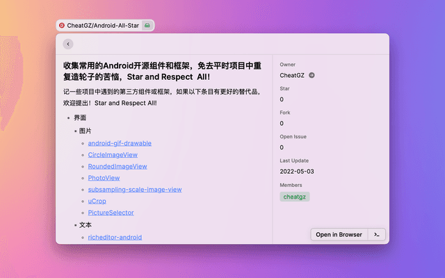 Search repositories on GitHub and open previously visited ones faster.