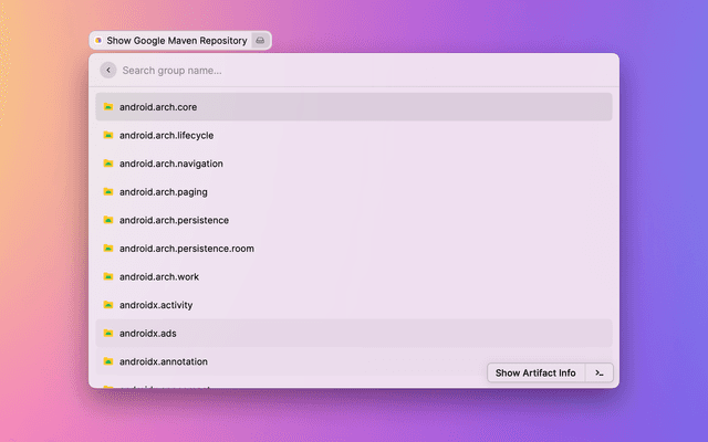 Show and search for artifacts in Google's Maven repository.