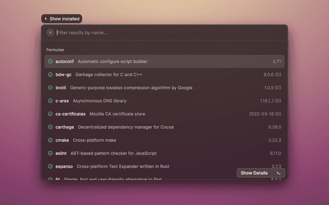 Search and manage your brew formulae and casks from Raycast.