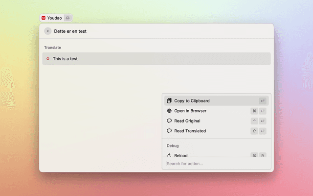 But compared with Alfred Youdao PowerPack workflow, the Raycast existing Youdao extension has more steps to execute to get translated content which is form based.